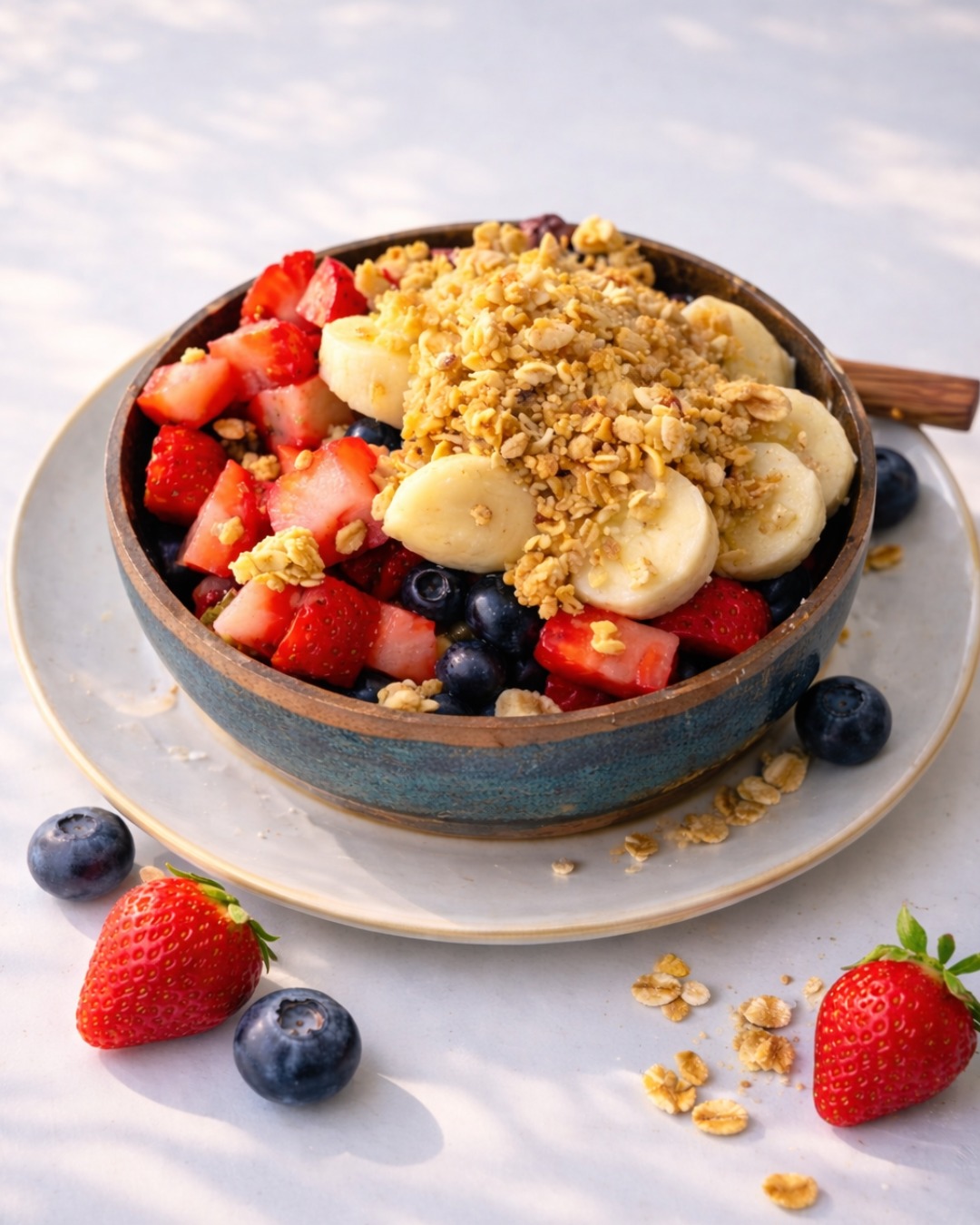 Add: All fruits $1.50, Peanut butter $0.75, Nutella $0.75, Granola $0.75, Fresas $0.50, Blueberries $0.50, Banana $0.50, Shredded Coco $0.25, Miel $0.25
